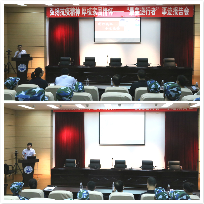 在9月28日的报告会上,瓦房店市中心医院放疗科副主任徐家亮、导管室护士牛承运分别以“逆行武汉今生无悔”和“在武汉的那些日子”为题,讲述了他们得知疫情蔓延后主动请战,作为辽宁省第三批援鄂医疗队队员进驻武汉,筹备雷神山医院建设,收治新冠肺炎病人和照顾重病患者的点滴故事。